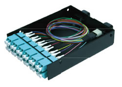 MTP or MPO depending on the vendor stands for multi terminated push on and is another form of high density Preterminated Fibre. This is simply a plug and play solution for fibre, no terminating ,no splicing simply plug in and walk away. This type of solution is becoming increasingly popular with data centres and other high density end users.